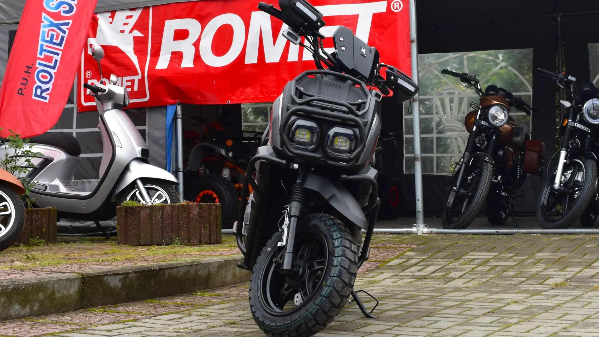 ROMET TANK 125 to nowoczesny skuter miejski o pojemności 125 cm³, wyróżniający się agresywnym designem w stylu adventure. Liczne osłony, orurowanie, stylowe opony i podwójne oświetlenie LED nadają mu wygląd gotowego do przygód pojazdu, a jednocześnie pełnią funkcje praktyczne chroniące skuter i kierowcę. Jednocylindrowy, czterosuwowy silnik o pojemności 124,6 ccm dostarcza 8,5 KM mocy, wystarczającej do dynamicznego poruszania się po mieście i na krótszych trasach międzymiastowych. Maksymalna prędkość 85 km/h czynią go idealnym wyborem dla osób pragnących więcej niż tradycyjne skutery 50cc, ale bez skomplikowania większych motocykli. Bezstopniowa skrzynia biegów CVT zapewnia płynne przyspieszenie i adaptację do warunków jazdy. Niska waga zaledwie 114 kg i wysoka zwrotność sprawiają, że nawigacja w mieście jest dziecinnie prosta. Zużycie paliwa na poziomie 2,3 L/100 km czyni ROMET TANK 125 niezwykle ekonomicznym w eksploatacji. Duży schowek pod siedzeniem, ergonomiczne siedzenie z oparciem dla pleców oraz nowoczesne oświetlenie LED podnoszące bezpieczeństwo uzupełniają bogatą listę zalet. Dostępny na prawo jazdy kategorii A1 i B, skuter idealnie sprawdza się zarówno dla początkujących, jak i doświadczonych miłośników dwóch kółek.